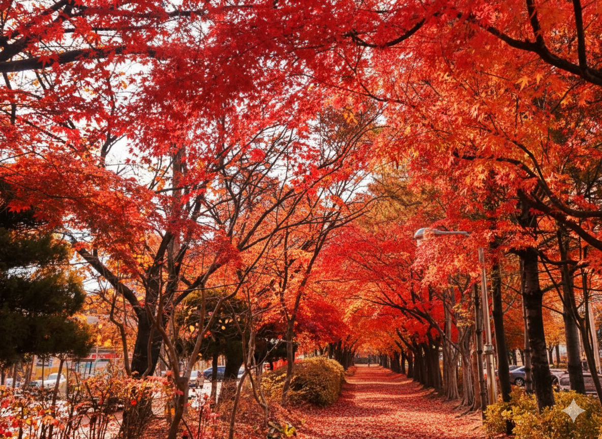 | 중외공원 | 도심 속 대형 공원, 메타세쿼이아길, 단풍 숲길 | 도심에서 가까우며, 산책로가 넓고 단풍 밀집도 높음 | 주말 및 절정 시기 혼잡함 |