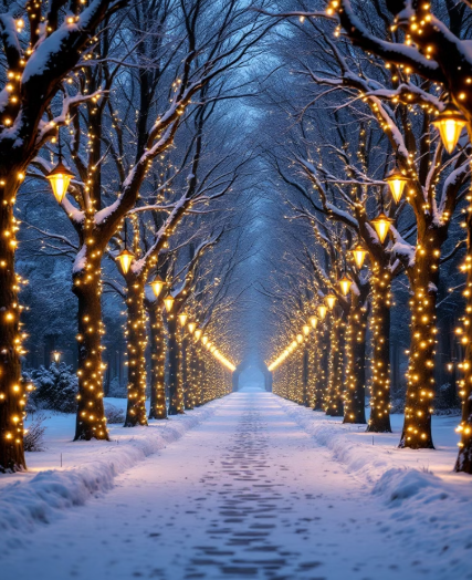 입구를 지나 안쪽으로 들어가면 루미나리에로 꾸며진 메타세쿼이아 산책길이 이어집니다. 긴 가로수길 양쪽에 따뜻한 색감의 조명이 줄지어 켜져, 걷기만 해도 크리스마스 영화 속 장면에 들어온 것 같은 기분을 줍니다. 나무가 높고 간격이 일정하다 보니 인물 사진을 찍었을 때 배경이 자연스럽게 정리되는 것이 특징입니다. 이 구간은 축제의 대표 포토스팟이자, SNS와 블로그에 가장 많이 올라오는 사진 장소이기도 합니다.