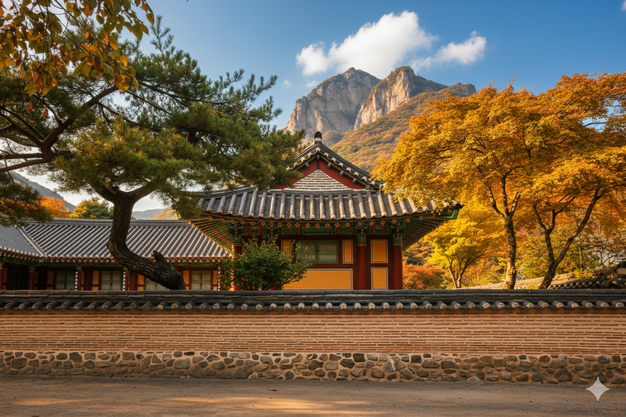 고즈넉한 사찰 풍경 속 붉은 단풍과 고목들이 어우러진 전남 대표 가을 여행지입니다.