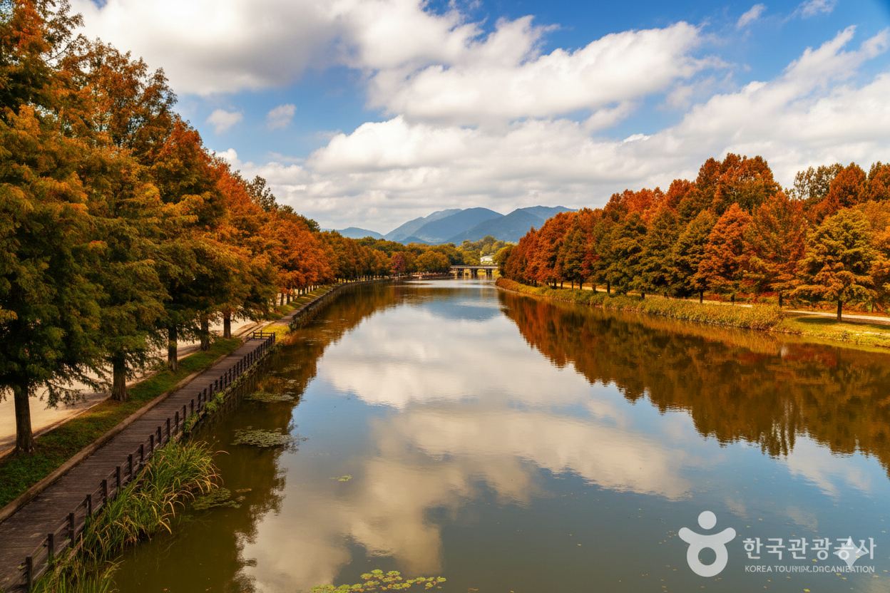 담양천을 따라 이어지는 천년 숲길. 메타세쿼이아길과 함께 걷기 좋은 단풍 명소입니다.